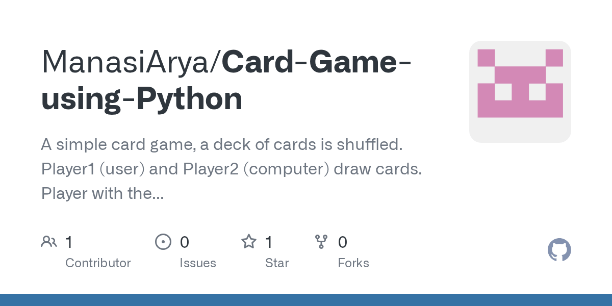 01/12/2019 · trading card game in python. I am going to show you a card, guess whether the next card is higher or lower, get four in a row to win!') number = random.randint (1, 12) number1 = random.randint (1, 12) number2 = random.randint (1, 12) number3 = random.randint (1, 12) number4 = random.randint (1, 12) #five variables for five. Should age operations depend on external dates outside the object? Guess if the next card is higher. 16/05/2017 · import random guessestaken = 0 print ('hello!